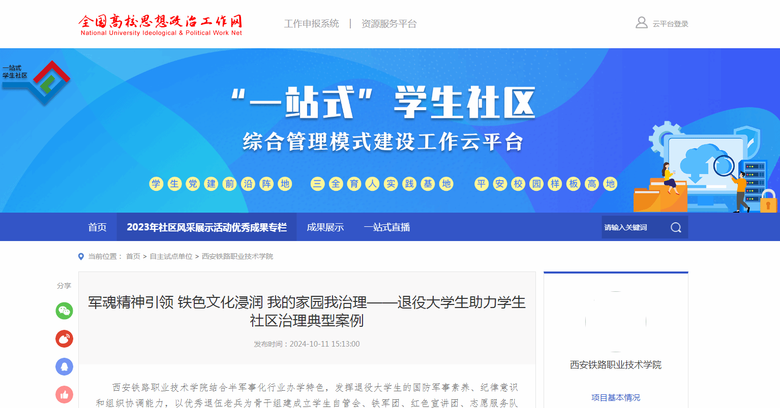 军魂精神引领 铁色文化浸润 我的家园我治理——退役大学生助力学生社区治理典型案例