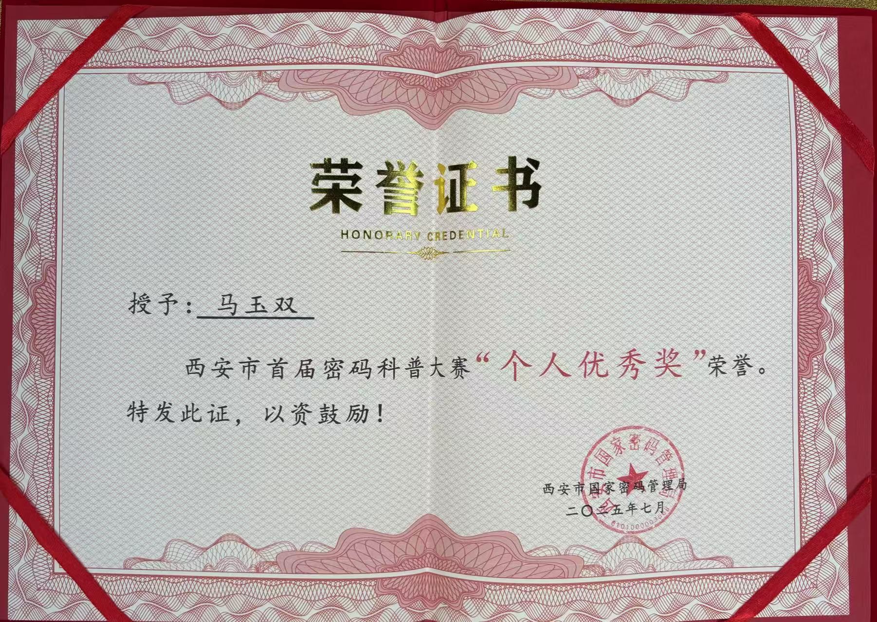 西安市国家密码管理局于6月至7月举办首届密码科普大赛。来自市级机关、高校、医院及企业等16支团队、100名个人成功晋级决赛,我院2支参赛团队在决赛中分别获得“团体优秀奖”,1名学生获得“个人优秀奖”。