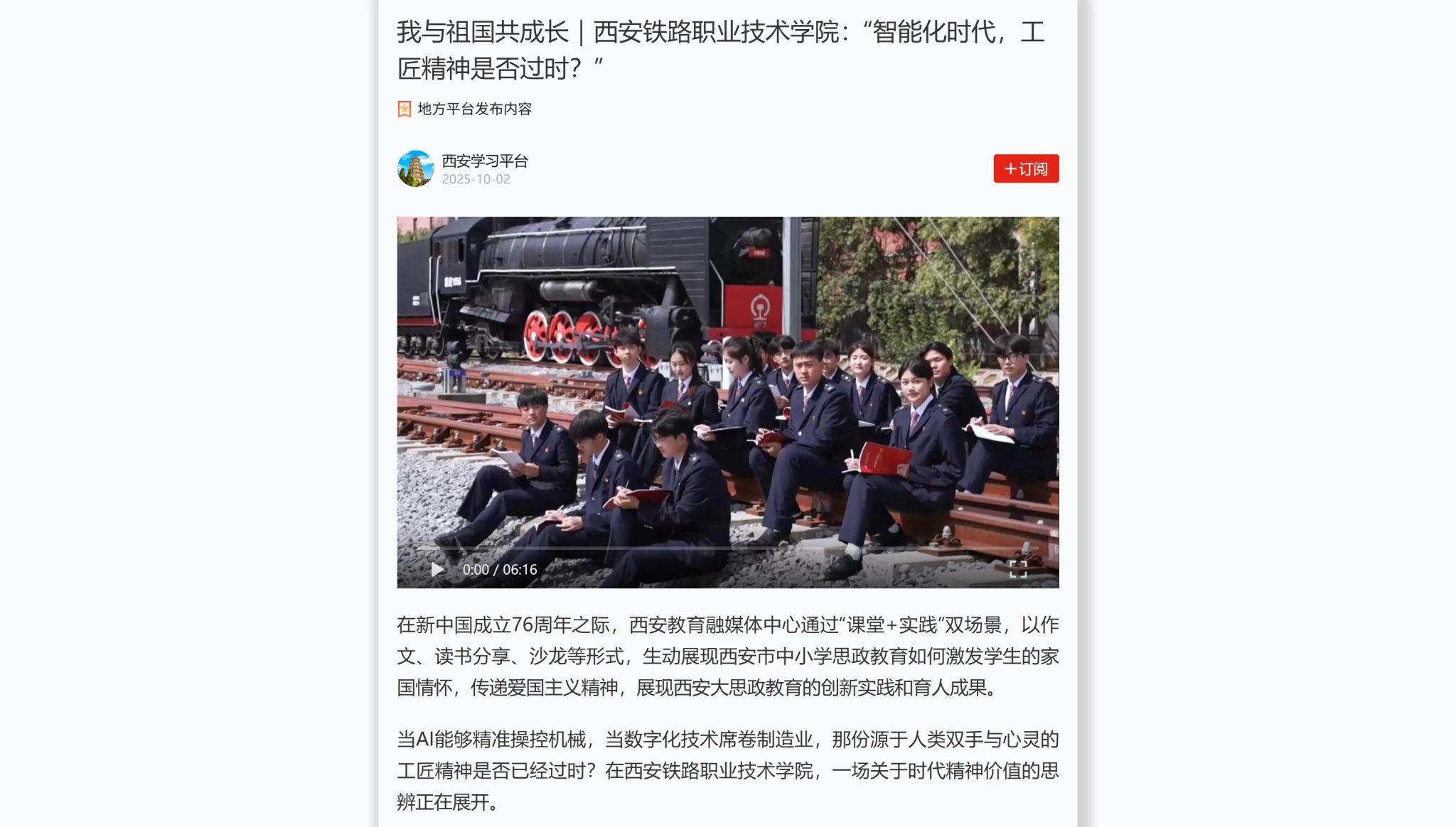 我与祖国共成长|西安铁路职业技术学院:“智能化时代,工匠精神是否过时?”